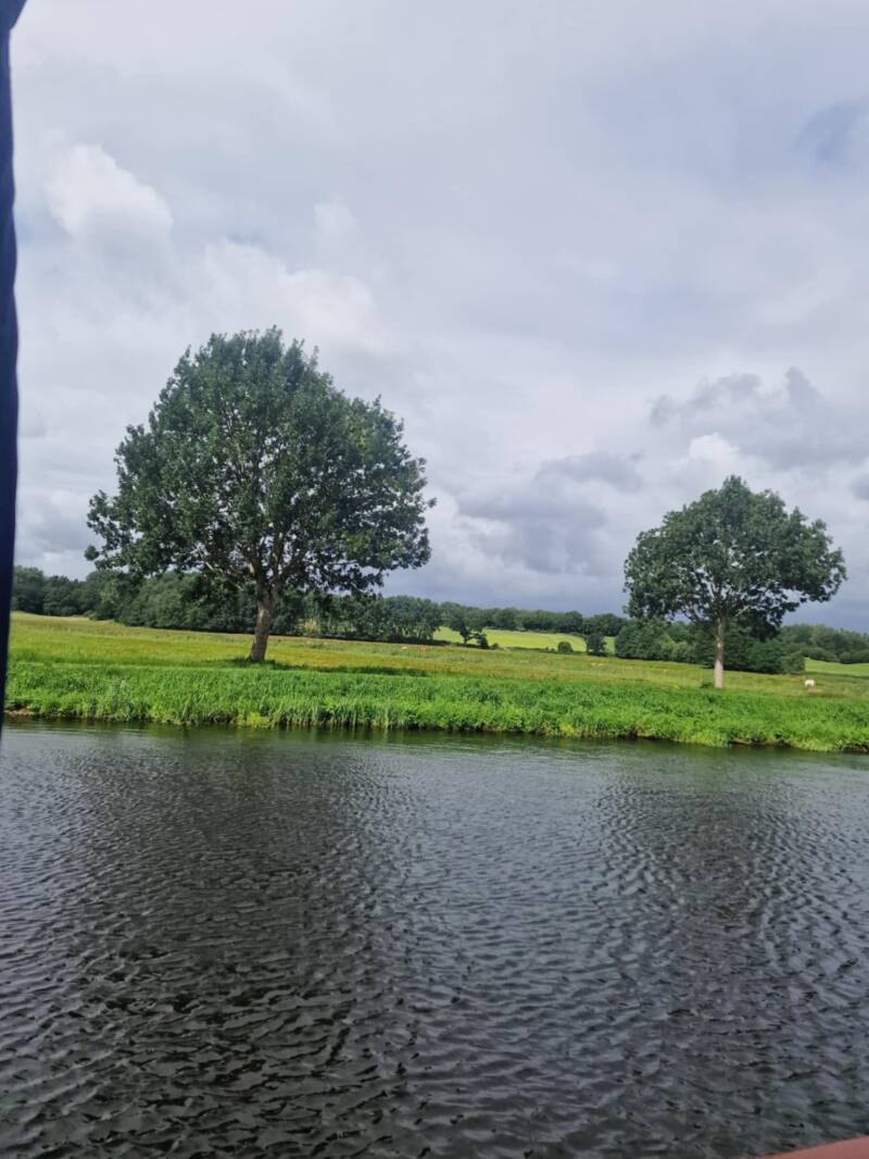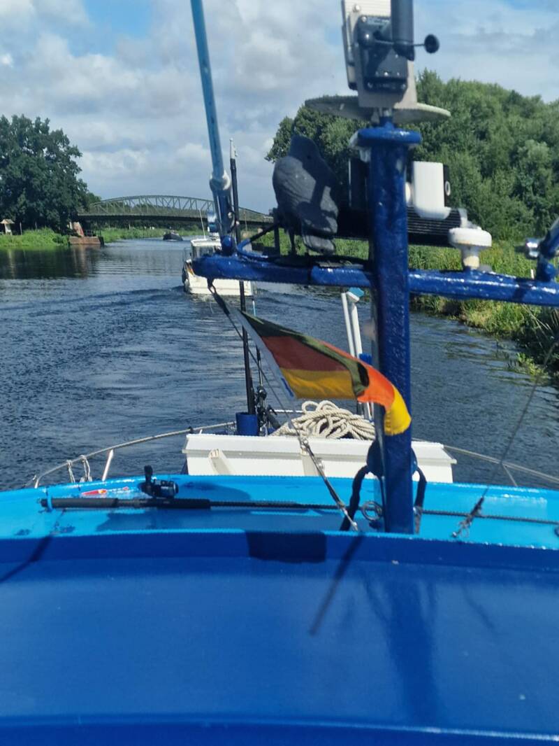 Ved den sidste del før Lübeck, ligger der en Biergarten , hvor vi i alle de år , vi har sejlet forbi , har talt om , at de godt kunne lave en anløbsbro . Den ser hyggelig ud .