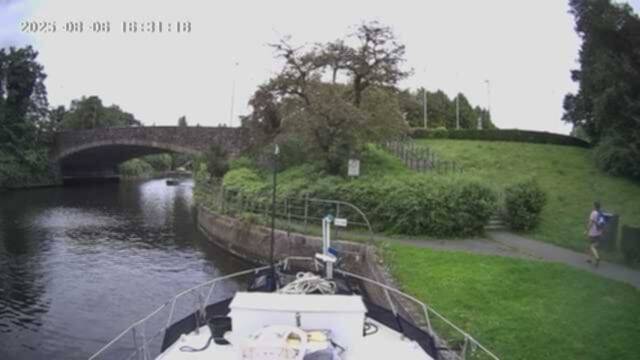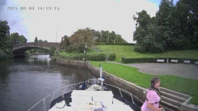 Vi slipper dog ikke helt for regnen , for da vi står i 3'die sluse , kommer der en skylle , som dog hurtigt driver væk .