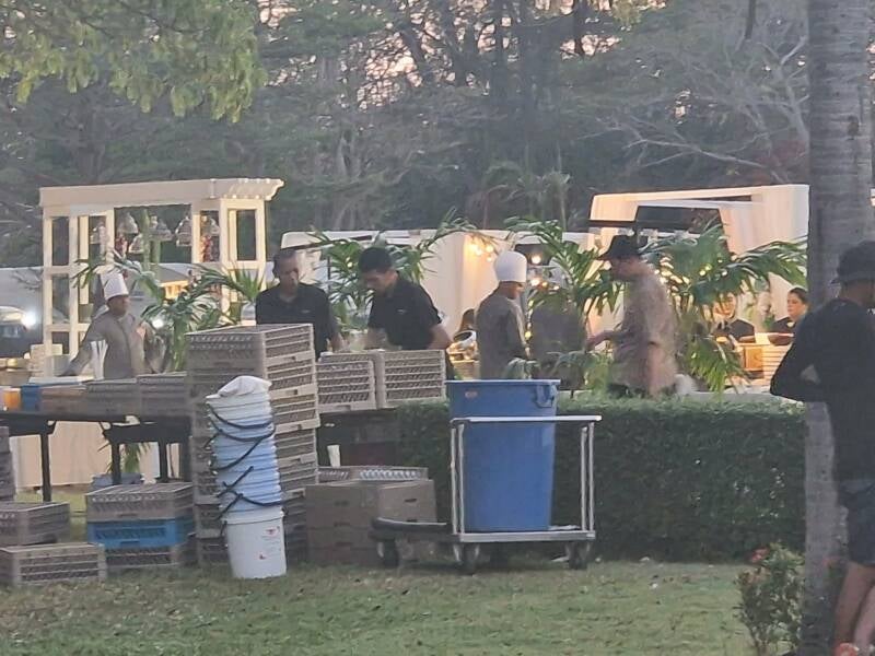 Til aften er der så gang i bryllups setuppet . Det ser ud til at det er et indisk par der skal giftes og præsten ligner en katolsk præst .