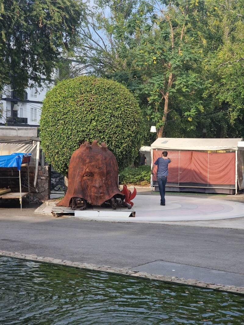Lige efter indgangen er der denne skulptur , den er faktisk rigtigt flot .