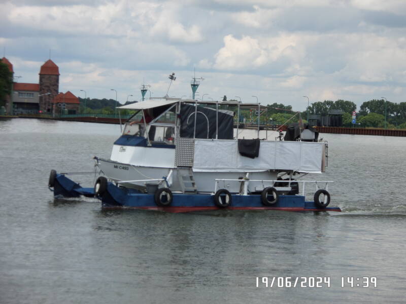 Vi lægger til ved liggestedet i Minden kl. 13.50 Sådan kan en båd åbenbart også se ud !