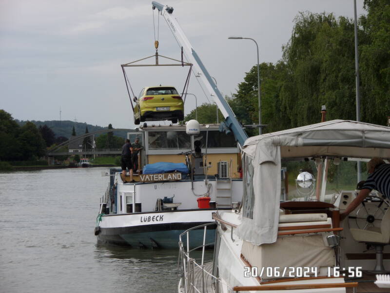 Lidt senere , kommer der en lægter og lægger til og efterfølgende læsser sin bil af .