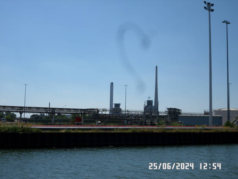 Vi kommer forbi et stykke hvor der ligger en kæmpe kemivirksomhed . Broarbejde .