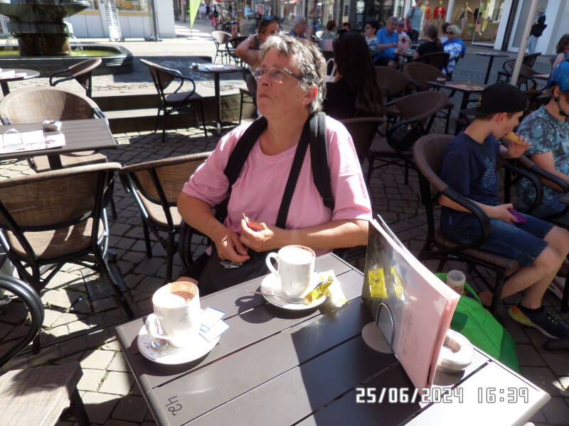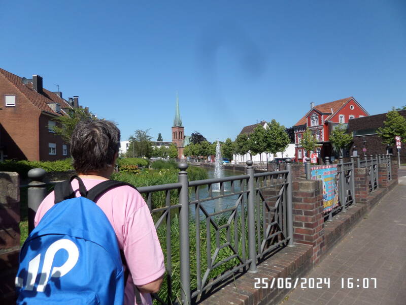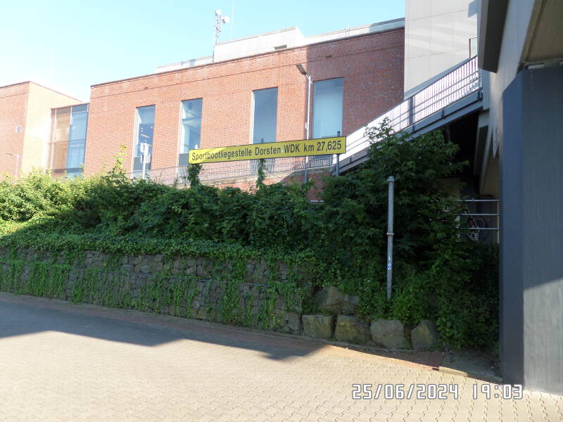 Sikkert nede og ude af slusen , sejler vi de sidste par km , hen til liggestedet i Dorsten . Vi har været her før og man ligger med udsigt til et indkøbscenter og man kan gå lige igennem , så er man i byen .
