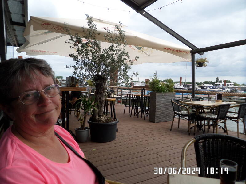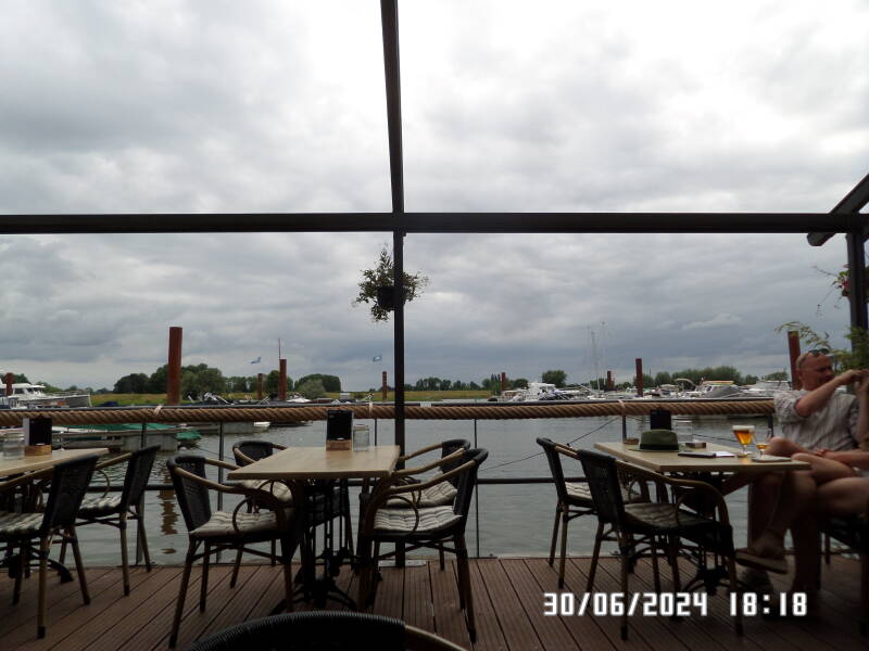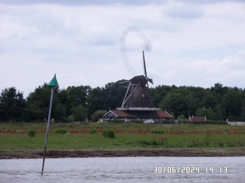 Det var ind imellem en meget blæsende sejltur , vores vindmåler gik fuldstændig amok , da der ind imellem kom nogle store blæsende områder , hvor vinden var oppe på 8 - 9 ms hvor der så også var bølger på Geldersche Ijssel . Vi har i dag også set en del sportsbåde , der kom sejlende nordfra .