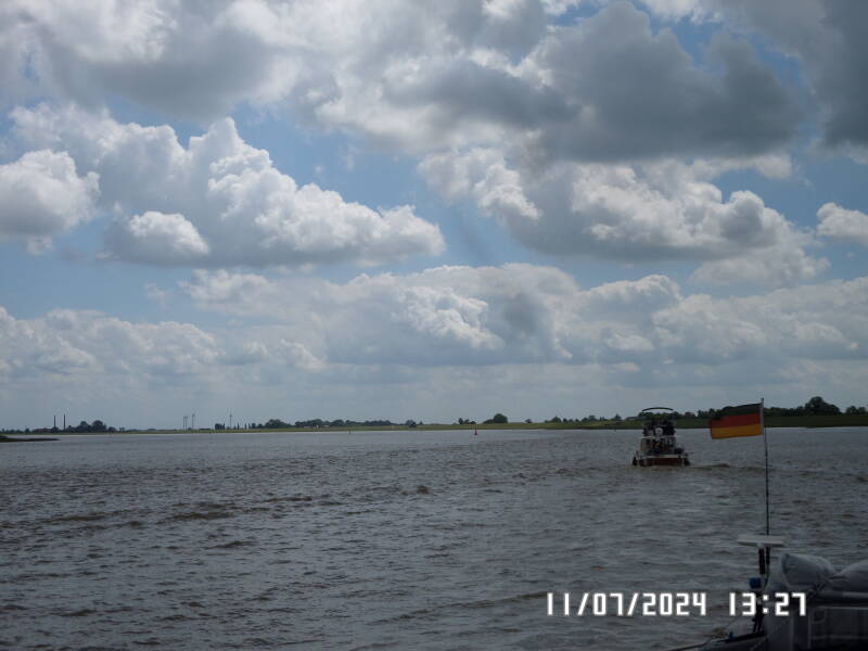 Vi er nu ude på Ems igen og dagens mål som er Papenburg , ligger små 40 km. længere nede på floden . Det blæser en del , men det betyder ikke andet end at det tager lidt af den fart , som medstrømmen ellers giver .