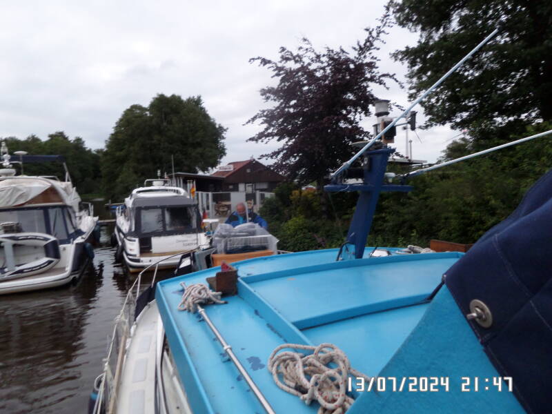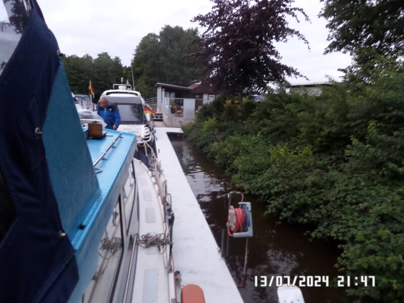 Vi sejler ganske få km. og lægger til i Wassersportsverein Dorpen - Lehe kl. 21.