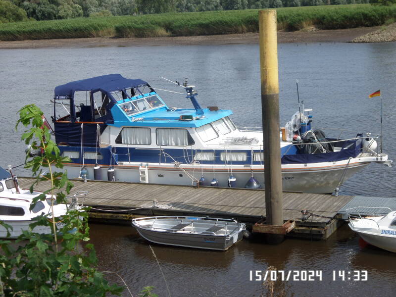 Jeg får læst , at der i Stadthafen i Elsfleth er en flydebro , hvor man kan lægge til . Stadthafen i Elsfleth er ganske enkelt en flydebro , der ligger i den ene side af Untere Huntes løb . Her er der plads til os , så det er her vi kaster tovet ud til fortøjring .