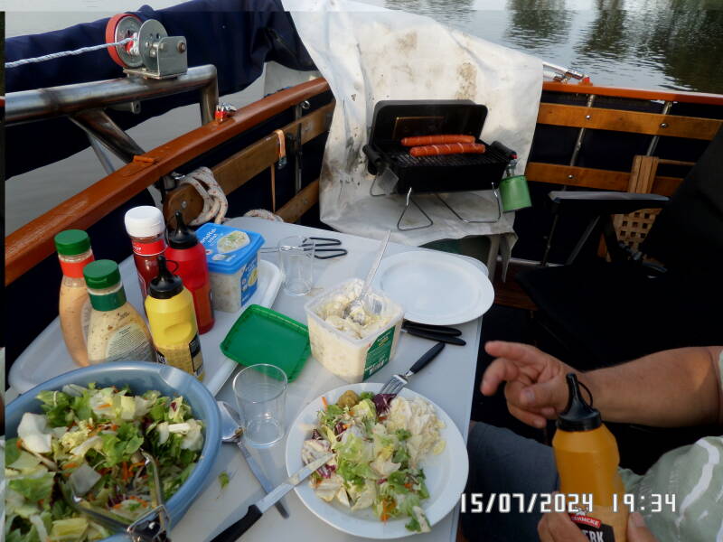 Til aften , står menuen på salat , kartoffelsalat og en enkelt lille grillet pølse .