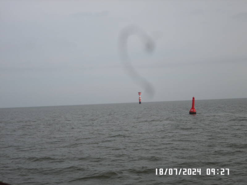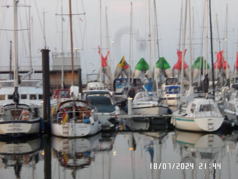 I dag er vi MEGET tidligt oppe , kl. 4.30 , da vi skal udenom til Cuxhaven . I forhold til vejrudsigten , skal det være i dag , da vinden er maksimalt 3 - 4 ms. Vi har prøvet at sejle turen med lidt mere vind og der brugte vi flere dage på at rydde op bagefter , da båden dengang krængede ca. 45 grader på grund af nogen meget uforudsigelige bølger , der kom alle steder fra . Slusen åbner kl. 6 og der har vi aftalt med Mats og Lotta , at vi skal afsted . Det er egentligt et meget dårligt tidspunkt at tage afsted , i forhold til tidevand , for vi kommer til at sejle i modstrøm , men vi er nødt til det , da det er en lang tur på omkring 123 km , og tage ca. 12½ time , det tog det i hvert fald sidste gang .