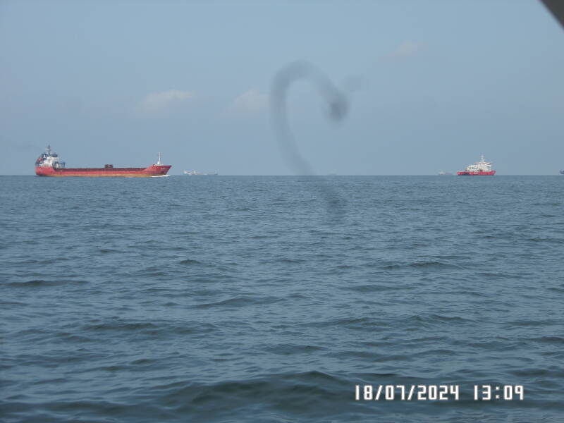 Vi lægger fra kl. 6 og sejler et par hundrede meter over til slusen og på vejen ringer jeg og siger , at vi gerne vil lukkes ud . Da vi kommer derover ligger der allerede 1 båd og venter , så vi er 3 i slusen denne gang .