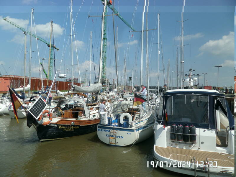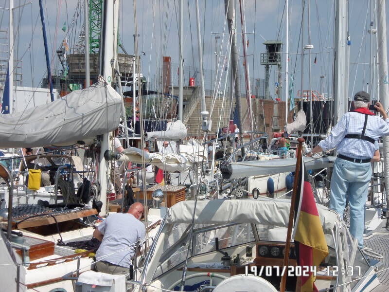 De lå der da vi kom og hvis det ikke var for en lidt for hurtig tysker i sejlbåd , havde der også været en plads til os , så vi lægger os udenpå FLORA . Klokken er blevet 13 .
