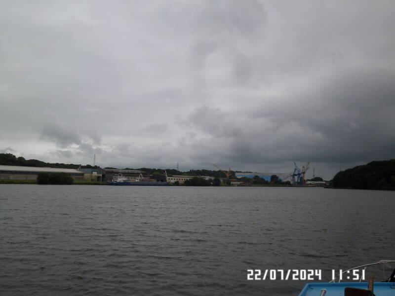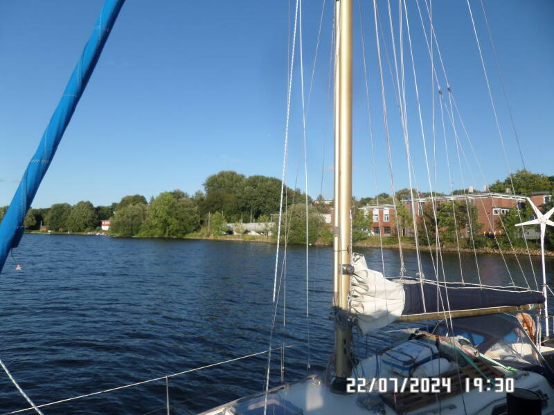 Kort tid efter drejer vi ned mod Rendsburg og sejler sådan set nu på Eidern .