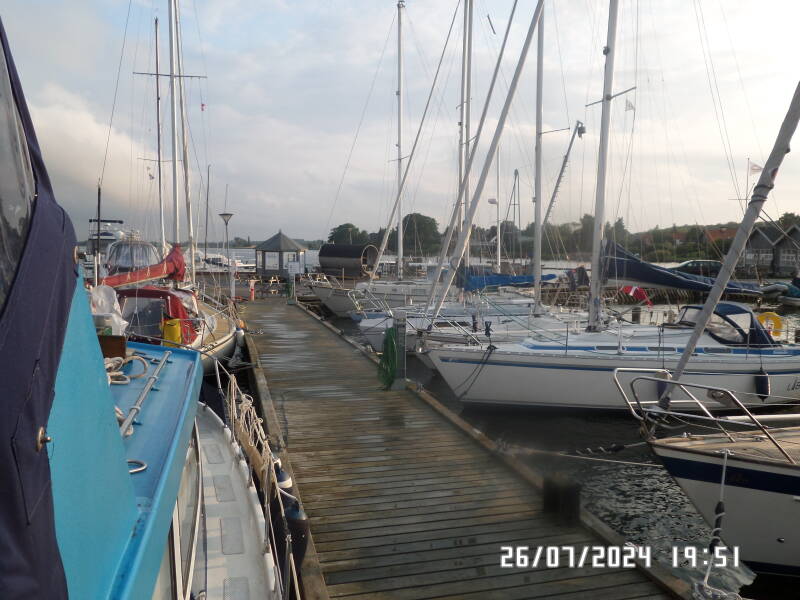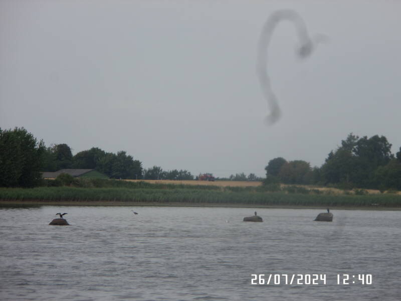 Vi lægger Nykøbing Falster bag os og sejler nord på i Guldborgsund . Det blæser og der er meget strøm i sundet og en masse bøjer , man skal sejle efter , da vandet er meget lavt udenfor renden . Smukt er det , bare ærgerligt at det ikke er sol og sommer .