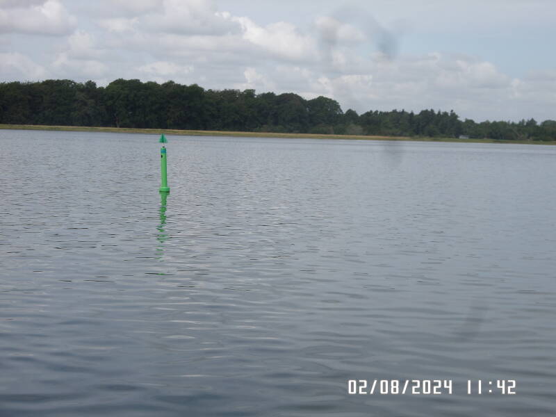 Der er mange bøjer ,til at afmærke sejlrenden her i Bøgestrømmen . Ved siden af sejlrenden er der meget lavt vand , så derfor står de nogen steder meget tæt .