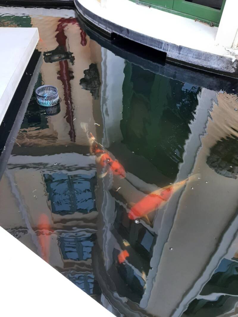 Da vi gik fra hotellet fik vi lige foreviget , nogle af alle de koikarper, der svømmer i et bassin ude foran hotellet.