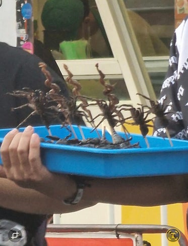 I Khao San Road går de og sælger alt muligt og også noget de anser som delikatesser. Skorpioner , slanger og edderkopper . Jeg får kryb bare af tanken .