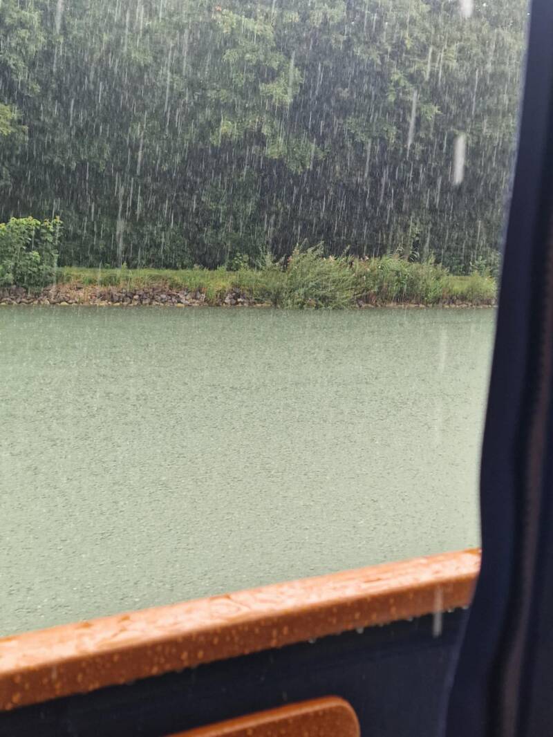 Vi har næsten lige fået lagt til , så kommer der en ordentlig byge . Vi havde fået en undervejs .