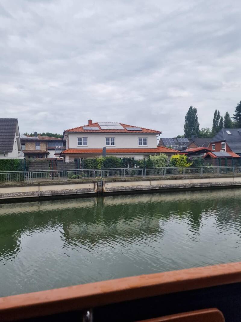 Herfra er der så en times sejlads til yachthaven Sehnde , hvor vi kan ligge udenfor havnen ved gæstebroen og her kan vi få strøm på .