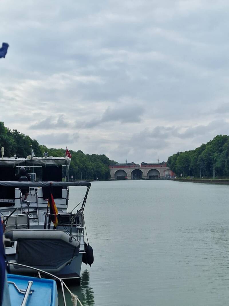 Vi venter vel 1/2 times tid , så kan vi sejle ind efter en lægter , alle 3 og blive sluset omkring 15 m op .