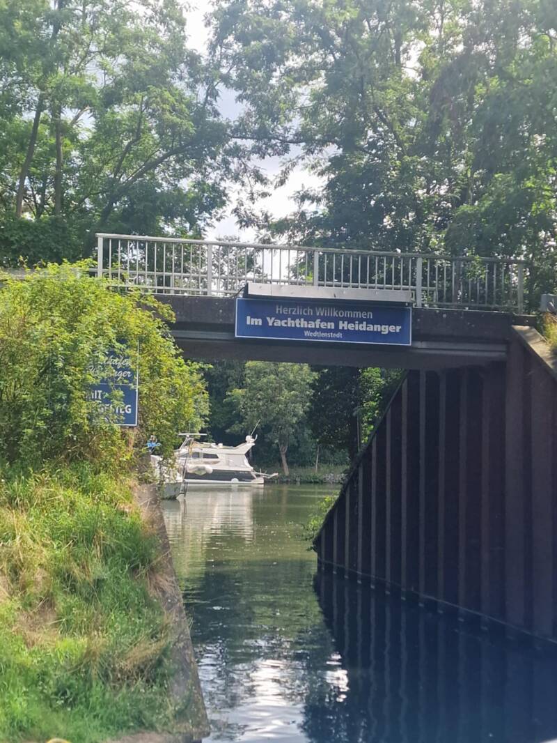 Indsejlingen til Yachthafen Heidanger, er ikke så let at få øje på , man skal vide at den er der , ellers ser man den først fra kort afstand .